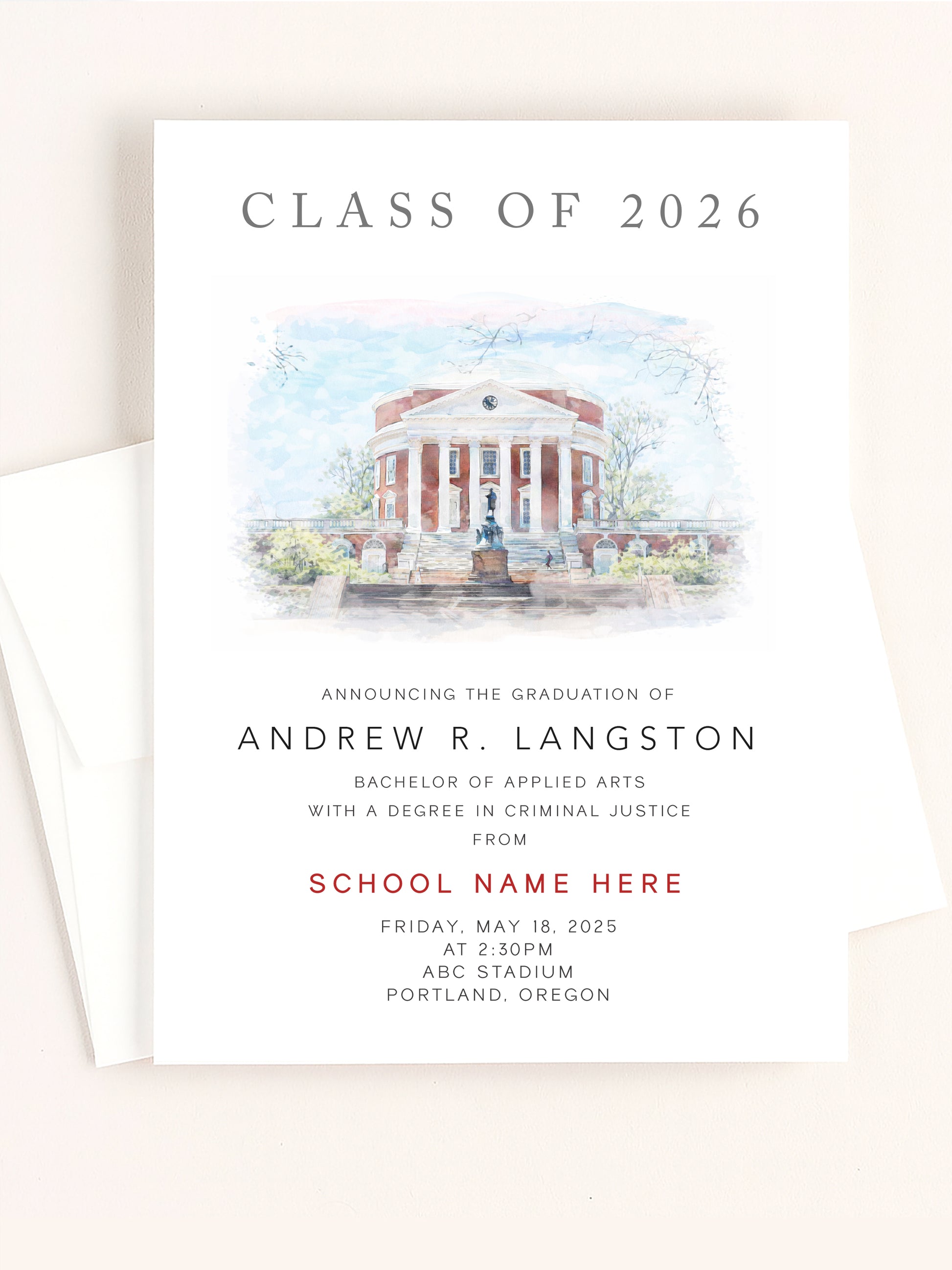 Each set includes 25 high-quality announcement cards and coordinating envelopes, printed on thick, fine-stationery paper for a polished, professional feel. These University of Tennessee grad cards are customizable with your name, degree, and ceremony details, making them ideal for bachelor’s, master’s, or doctoral graduates. Whether you’re mailing announcements to family across the country or handing them out at your graduation party, these cards make it easy to celebrate in style.